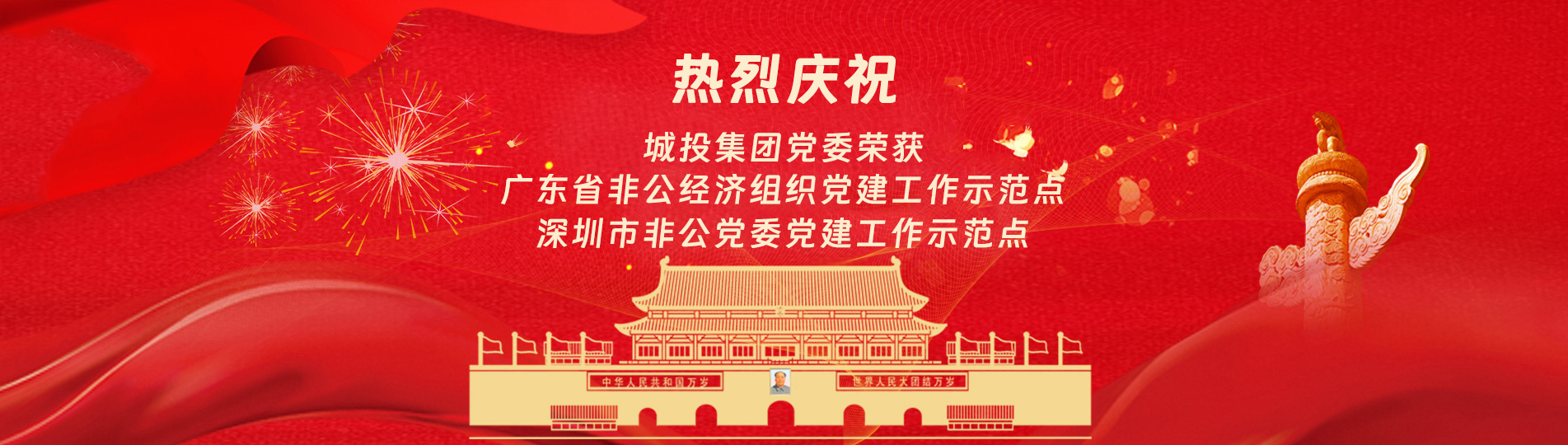 在上級(jí)黨委的正確領(lǐng)導(dǎo)下,在城投集團(tuán)的大力支持下,集團(tuán)黨委緊緊圍繞企業(yè)發(fā)展戰(zhàn)略,將黨建引領(lǐng)核心貫穿始終,以五心工程(即思政建設(shè)核心工程、經(jīng)營(yíng)發(fā)展中心工程、企業(yè)文化向心工程、黨建品牌匠心工程、服務(wù)基層愛(ài)心工程)為抓手,大膽探索,勇于突破和創(chuàng)新,不斷形成城投黨建特色,有效輸出城投實(shí)踐經(jīng)驗(yàn),充分發(fā)揮紅色引擎作用,先后獲得深圳市非公黨委黨建工作示范點(diǎn)深圳市兩新組織黨建工作示范點(diǎn)深圳市文明單位、深圳市先進(jìn)基層黨組織、廣東省非公有制經(jīng)濟(jì)領(lǐng)域黨建工作示范點(diǎn)等榮譽(yù)稱號(hào)。